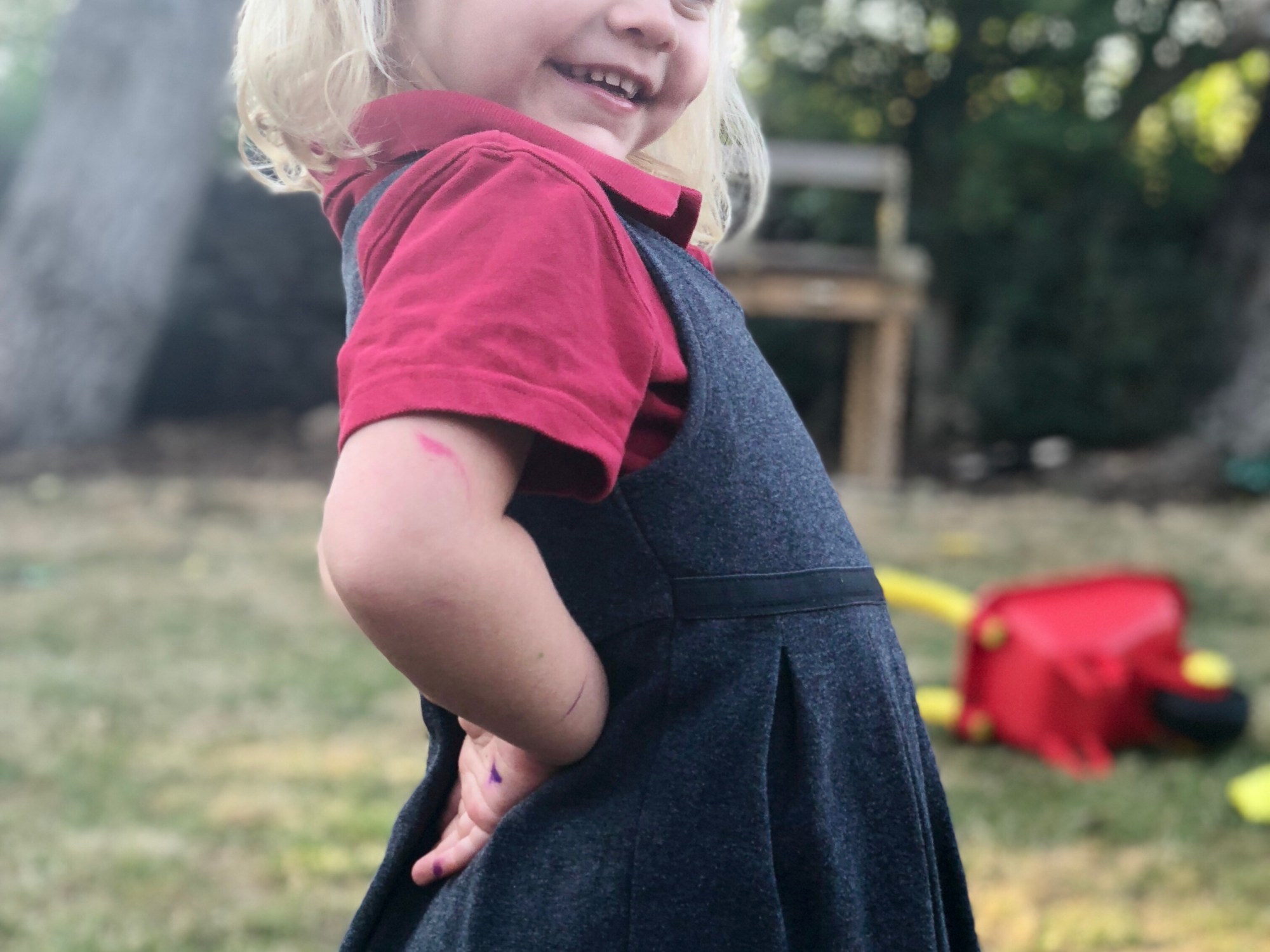 Second time round does feel much easier. We all know the school, the staff are lovely and welcoming and the routine is no longer alien. Esme has been going into the place every day for the last 2 years and thoroughly made herself at home (at the end of last term she told the Head off for being late as he re-entered school in the morning just after the bell had gone!) We just know the score! Esme has less questions because she has been taking it all in these last few years, and those that she does have she asks our resident expert George over dinner of an evening! ‘IS the Macaroni Cheese nice?’ and ‘what do I do if I need a wee on the playground?’ being the hot questions up for debate this week! (I interjected on the final one that ‘a sneaky tree wee’ might be OK when caught short on a family walk in the woods but was NEVER OK on the playground!!!)